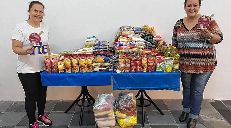 A Associação Jauense de Tênis de Mesa (AJTM) promoveu no fim de semana passado o 1º Festival Interno AJTM-Jaú Shopping de Tênis de Mesa. Com dezenas de participantes e presença de público de todas as idades, a competição arrecadou mais de 150 kg de alimentos que foram doados para a Pró-Meninas Sociedade de Amparo, de Jaú. À esquerda, a coordenadora e técnica da AJTM, Daniela Bassi, com Renata Zugliani, representante da entidade Pró-Meninas.