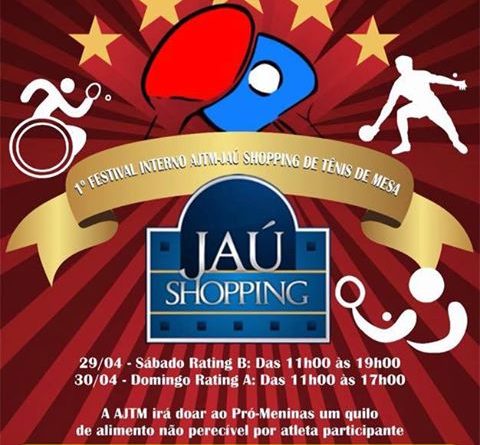 Nos dias 29 e 30 de Abril vai acontecer o 1º FESTIVAL INTERNO DE TÊNIS DE MESA no JAÚ SHOPPING, tendo início às 11horas da manhã.