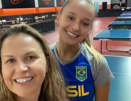 A ginasta brasileira Jéssica Maier visitou nesta quarta-feira (08) as instalações da Associação Jauense de Tênis de Mesa (AJTM). Jéssica estava acompanhada da caravana Sesc Verão e foi recebida pela dirigente e técnica Dani Bassi, que almoçou com a equipe.